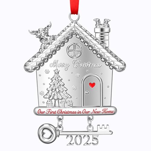 New Home Christmas Ornament 2025, Our First Christmas in New Home House Ornament with 2025 Key Design, Housewarming Gift for New Homeowners, Metal Xmas Tree Decoration Keepsake