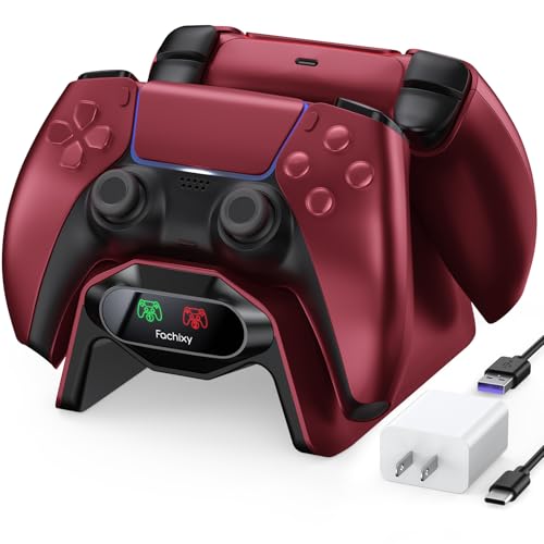 Fachixy Controller Charger for PS5, with 2-Hour Fast Charging chip, PlayStation 5 Charging Station with US Power Adapter and Cable, with LED Charging Status Indicator Light, Red