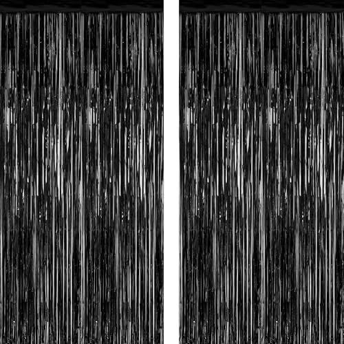 2 Pack 2025 Graduation Party Decorations, 3.28 FT x 7.05 FT Black Backdrop, Metallic Graduation Photo Backdrop Fringe Curtains Tinsel Backdrop Foil Streamer, Grad Party Supplies Photo Booth Props