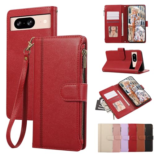 Rosbtib Case for Google Pixel 8, Wallet with Card Slots for Pixel 8 Case, Fashion PU Leather Magnetic Flip Zipper Style Phone Cover for Google Pixel 8 - Red
