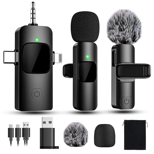 EVXVE 4 in 1 Mini Microphones Wireless Lavalier Microphone for iPhone Android Computer Laptop Camera USB-C,2.4G Ultra-Low Delay,Noise Reduction,Double Lapel Mic for YouTube TikTok Vlog (Mini Mic)