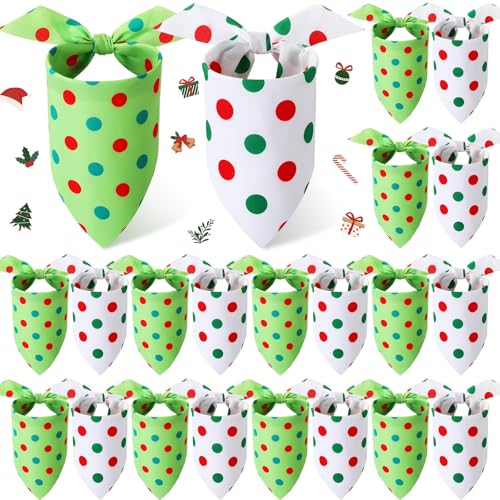 HunnmingRe 20 Pcs Christmas Dog Bandanas Bulk Dot Bandanas for Cats Xmas Kerchief Set Bibs Triangle Scarf for Small Medium Large Pet Decoration(Simple Color, Dot Pattern)