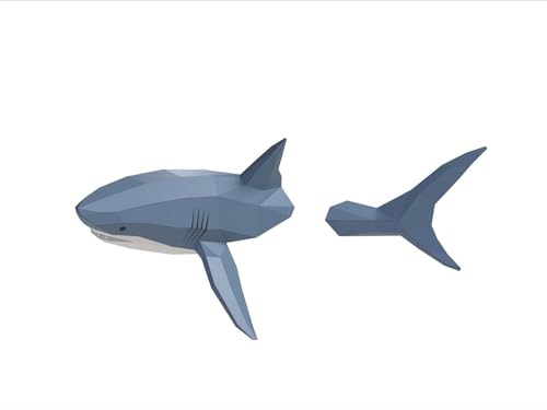 Shark on Wall Paper Sculpture,Left Side,Pre-cut DIY Papercraft Kit,Handmade Wild Animal Figurine,3D Paper Art,Low Poly Wall Decor,All Accessories Included,DIY Teens Gift