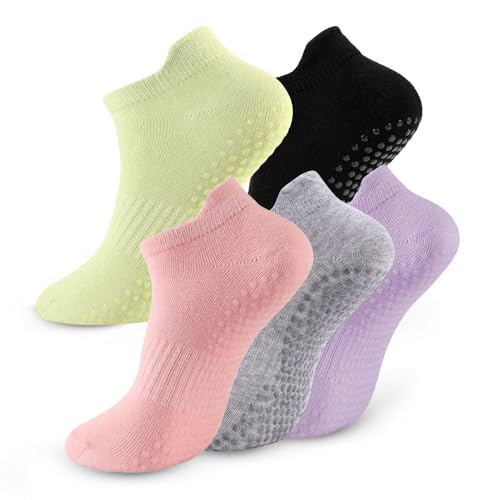 kepiibi 5 Pairs Pilates Socks with Grips for Women, Non Slip Grip Yoga Crew Socks, for Barre Hospital Barefoot Workout Dance Ballet