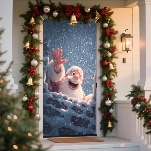NYZE Christmas Door Cover Decorations Indoor Santa Claus, Gingerbread Stickers Christmas Party Banner Outdoor Xmas Garage Door Decorations Window Wall (Hi Santa)