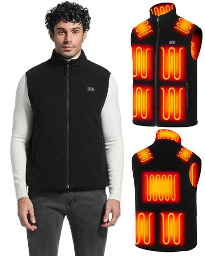 NAPALOOK Heated Vest for Men with Battery Pack Included (No Charger), 10 Heating Zones Polar Fleece Heated Vest & Gift Box Size 3XL– Ideal for Outdoor Activities