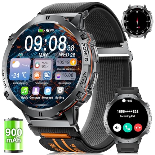 LIGE Military Smart Watch with 900mAh Battery(60+Standby),1.73" AMOLED with Compass Altitude and Barometric Pressure,110+ Sports Mode Tactical Fitness Tracker/Bluetooth Call Android iOS Smartwatch