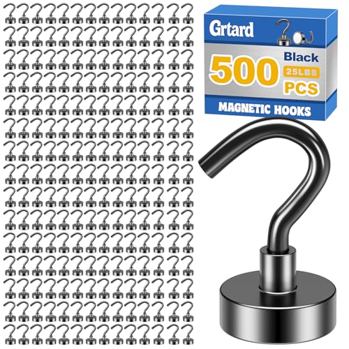 Grtard 500Pack Black Magnetic Hooks Heavy Duty, 25LBS Neodymium Magnet Hooks for Cruise, Strong Magnetic Hooks for Hanging, Magnets with Hooks for Home, Kitchen, Workplace, Office