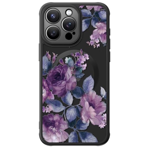 FUNMIKO Cute Phone Case for iPhone 13 Pro - Wireless Charging & Military-Grade Protection - Trendy Wildflower Design for Women Girls, Non-Slip Translucent Matte Hard Cover - Elegant Purple Floral