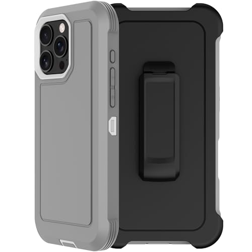 RubCase for iPhone 16 Pro Case 6.3” with Belt Clip Holster, 2X Screen Protector, Heavy Duty Military Grade Full Body Shockproof Drop Proof Rugged Protective Cover for iPhone 16 Pro (Gray)
