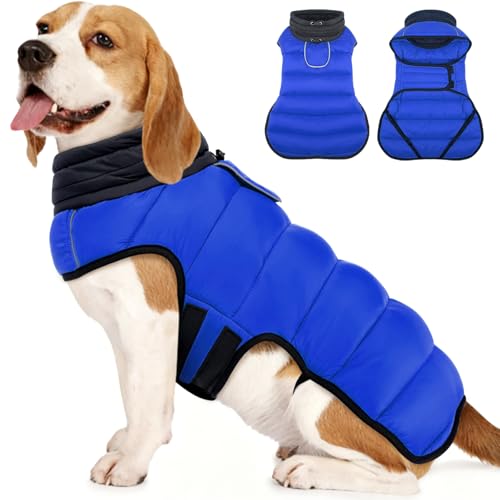MIGOHI Lightweight Dog Coat, Windproof Dog Jacket, Puffer Jacket for Large Dogs, Padded Vest with Reflective Strips, Warm Snow Vest in Cold Weather, Easy On Hook & Loop Belly, Blue, XL