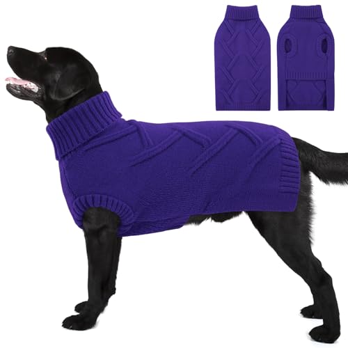 Queenmore XL Dog Sweater Christmas Holiday Pullover Sleeveless Turtleneck Knitted Sweater for Large Dogs Winter Pet Outfit for Labrador Pit Bull Xmas Party Outfits (Orchid, XL)