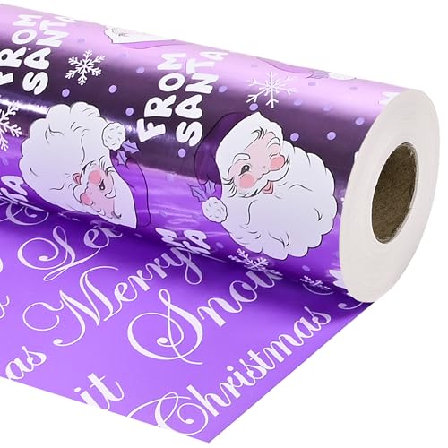 Altarho 30 Inch Christmas Wrapping Paper Jumbo Roll Printed on Purple Metallic Foil Paper - Reversible, Santa and Snowflakes, for Xmas, Holiday, Party Celebration (Purple Santa, 30 Inch X 100 Feet)