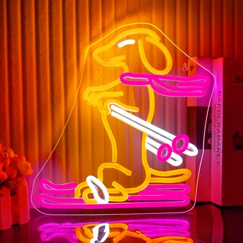 Lucunstar Skiing Dachshund Neon Sign Dog LED Sign for Wall Decor Dachshund Decor USB Connectivity Adjustable Brightness Ski Neon Light Up Pet Shop Bedroom Wall Gifts for Dog Lover