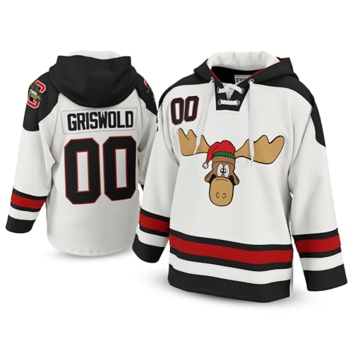 UNLC Griswold #00 Movie Hockey Hoodie – Stitched Letters and Numbers S-5XL Authentic Fabs Apparel 4X-Large White