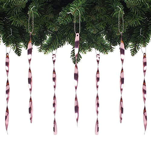 AMS Christmas Tree Ornaments 24PCS Aluminum Twisted Icicles Ornament Set for Christmas Tree New Year Party Decorations Supplies(Shiny 9.8",Pink)