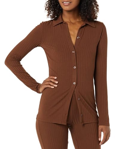 Amazon Essentials Women's Wide Rib Long Sleeve Button-up Collared Cardigan (Pants Sold Separately), Chocolate, X-Large