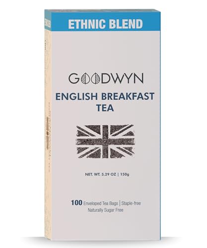 Goodwyn English Breakfast Tea – 100 Individually Wrapped Plastic-Free Tea Bags, Rich Full-Bodied Medium Caffeine Black Tea, Sugar-Free Gluten-Free Travel-Friendly Indian-Origin Chai, Bold Classic Morning Tea, Everyday Tea Sampler