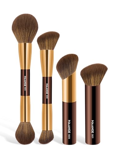 MAANGE 4 PCS Foundation Makeup Brush Set Double-ended Kabuki Brush Contour Brush for Liquid Powder Concealer Cream Cosmetics Blending Blush Face Makeup Tools Kit (Coffee Gold)