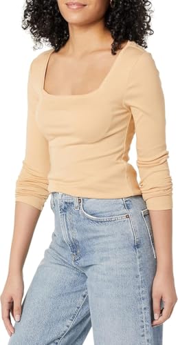 Amazon Essentials Women's Slim-Fit Long Sleeve Square Neck T-Shirt, Light Camel, X-Large