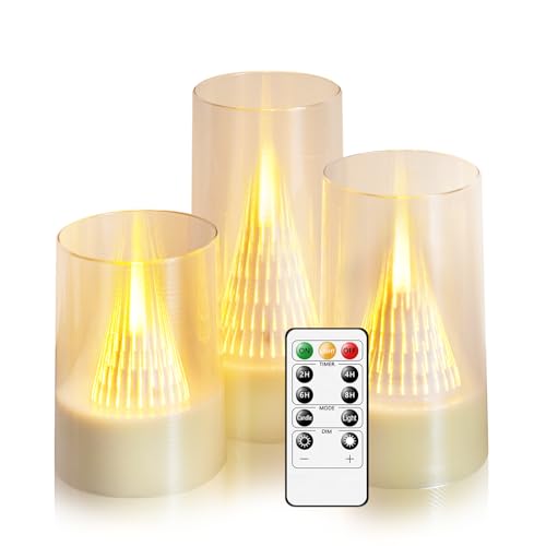 Eebus LED Flameless Candles with Remote - Battery Operated,Fake Candles for Home Décor Tapered Glowing Pillar Candle Lights Add a Warm and Romantic Atmosphere Set of 3 (D 3"×H 4" 5" 6") (Ivory)