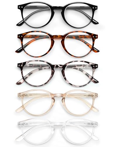 JOLISU 5 Pack Reading Glasses For Women/Men-Blue Light Blocking Computer Reader w/Round Frame - Retro Clear Lens Fake Eyeglasses(2.0)