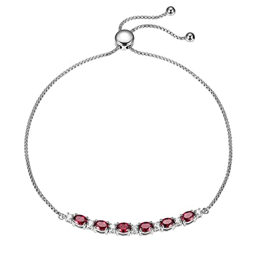 Amazon Essentials 0.175 cttw Lab Grown Diamond and Created Ruby 925 Sterling Silver Bar Bolo Adjustable Bracelet (H-I Color, I1 Calarity) (previously Amazon Collection)