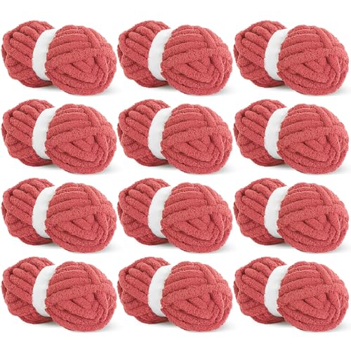 HOMBYS Red Chunky Chenille Yarn for Crocheting, Bulky Thick Fluffy Yarn for Knitting,Super Bulky Chunky Yarn for Hand Knitting Blanket, Soft Plush Yarn, 12 Jumbo Pack (27 yds,8 oz Each Skein)