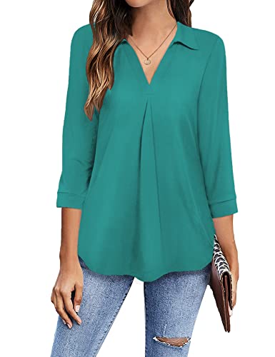 Newchoice 3/4 Sleeve Shirts for Women Loose Fit, Ladies V Neck Dressy Casual Work Blouses Plus Size Tunic Tops (Teal Blue, XXXL)