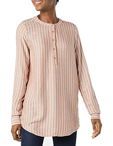 Amazon Essentials Women's Long-Sleeve Woven Blouse, Terracotta French Stripe, X-Small