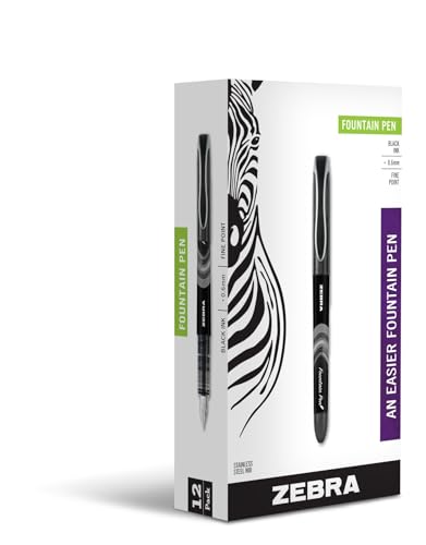 Zebra Pen Fountain Pen, 12-Pack Black Ink, 0.6mm Fine Point, Stainless Steel Nib, Disposable, Smooth Writing Experience, Ideal for Everyday Use (48310)