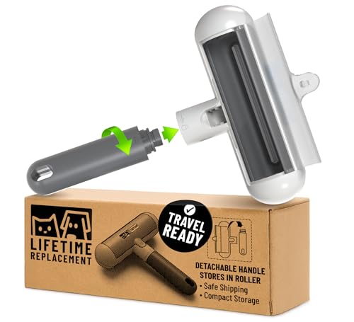 Triton Travel Pet Hair Removal Tool w/Fur Trapping Compartment and Detachable Handle, 60% Smaller Storage Size, Reusable Shedding Roller, Cat and Dog Hair Remover for Furniture, Couch (Gray/White)