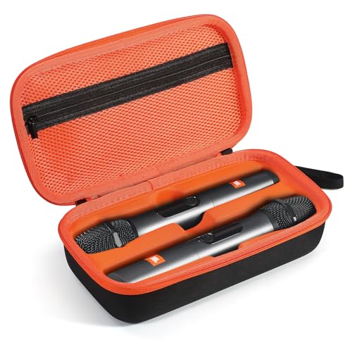 OUKNAK Wireless Microphone Case Compatible with Wireless Two Microphone System, Handheld Dual Mic Travel Bag, Portable Microphone Storage EVA Hard Shell Exterior Case (For Battery Style Black)