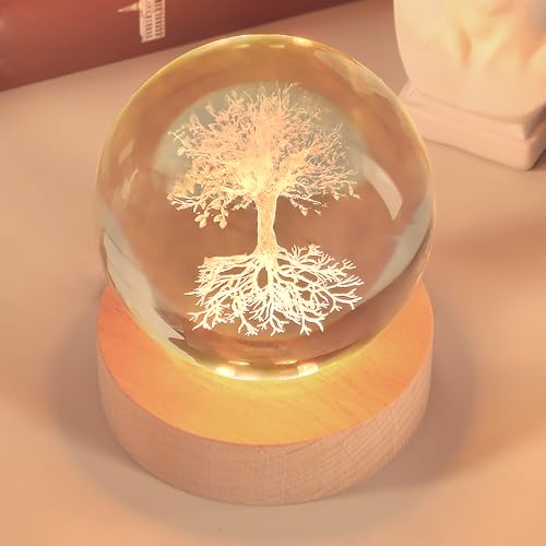 3.15In Tree of Life Crystal Ball Lamp with Wooden Base, 3D Crystal Ball Night Light, 16 Colors , Remote Controlled, Tree of Life Decor, Spiritual Gift for Women Christmas Gifts for Family Men Friends