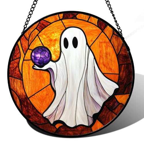 AMDERVEN Stained Glass Window Hanging - Halloween Decorations Ghosts Vampire Suncatcher for Doors Garden Indoor Funny Spooky Sun Catchers Gothic Decor Horror Gifts for Women Men Friend 7.8 in