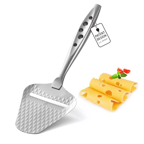 Premium Cheese Slicer – Effortless Slicing for All Cheese Types – Multi-Functional Cheese Cutter - Stainless Steel Cheese Plane – Quilted Pattern Reduces Resistance, Non-Stick, Ergonomic Handheld Grip
