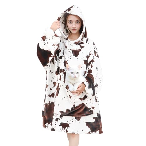 cow print Wearable Blanket Hoodie for Adults - Oversized Cozy Warm Sweater Blanket with sleeves for Home, Camping - Christmas/Birthday Gifts for Women & Men