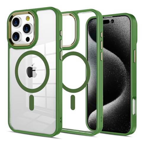 PinLiSheng Magnetic for iPhone 16 Pro Case [Anti-Yellowing] [Compatible with Magsafe] [Military Grade Protection] Shockproof Clear Hard Back Slim Case - Green