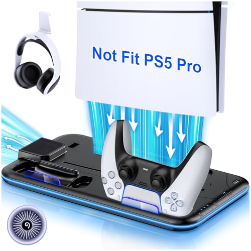 NinJoyGo PS5 Stand, PS5 Cooling Station with Controller Charging Station for PS5/PS5 Slim Disc Digital Console, PS5/PS5 Slim Accessories-Cooling Fan, Headset Holder, 15 Game Slot for PlayStation 5
