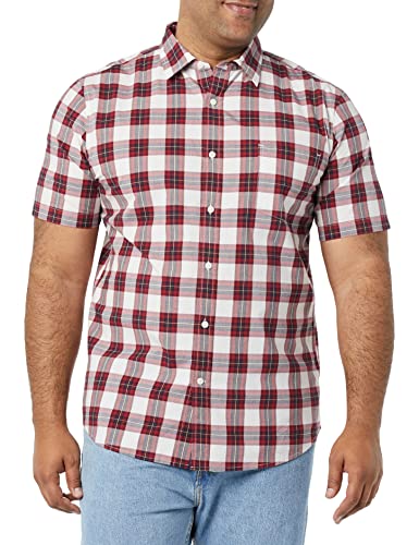 Amazon Essentials Men's Slim-Fit Short-Sleeve Poplin Shirt, Red Checked, Small