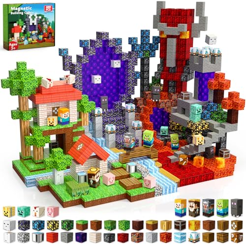 Annexfun Magnetic Blocks - 400PCS Magnetic Building Blocks Toys Forest Portal, Magnetic Tiles Kids Build Cubes 2025 Upgraded STEM Game Toys, Christmas Birthday Gifts for Boys & Girls Ages 3+
