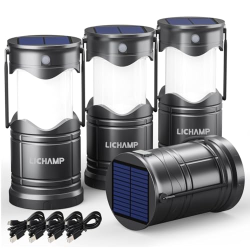 Lichamp 4-Pack Solar Camping Lantern, USB Rechargeable LED Lanterns Battery Powered Pop Up Flashlight Lamps with Three Modes Power for Power Outages Hurricane Supplies Emergency Indoor & Outdoor