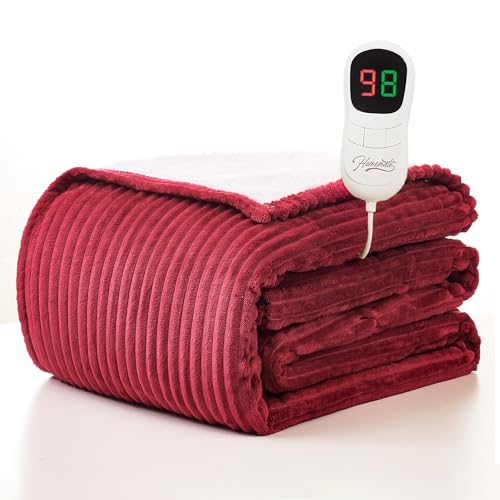 Homemate Electric Heated Blanket Twin - 62"x84" Heating Blanket Twin Size 1/2/4/6/8 Hours Auto-Off 10 Heat Level Over-Heat Protection Soft Flannel Sherpa ETL Certification