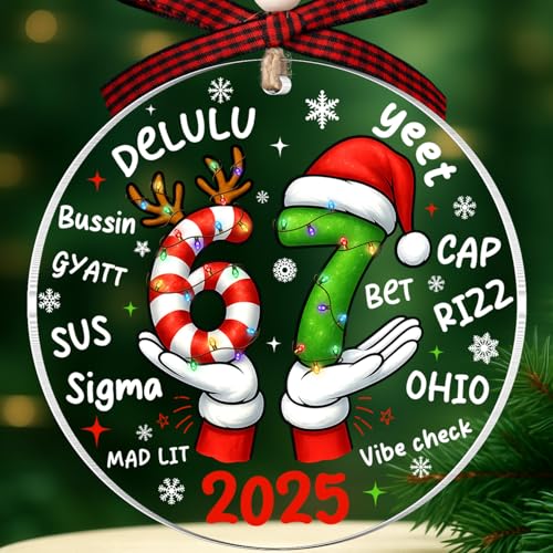 67 Ornament - 67 Christmas Ornament - Six Seven Slang Funny Meme Ornaments, White Elephant Gifts - Stocking Stuffers for Teens, Kids, Girls, Boys - Trending Acrylic Christmas Decoration Ornaments 2025