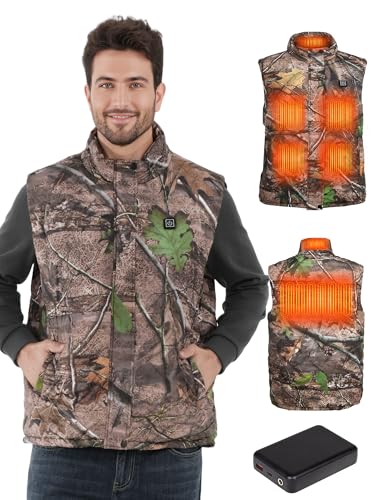 HOTHUGZ Heated Vest for Men with 12V 15000mAh Battery Pack Lightweight Rechargeable Warming Vest for Winter Outdoor, Hunting, Camo, 3XL