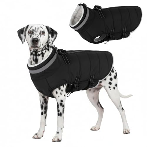AOFITEE Large Dog Winter Coat, Waterproof Jacket with Harness Hole, Warm Fleece Puffer Jacket for Large Dogs, Reflective Windproof Snowsuit for Dogs, Dachshund, French Bulldog, L