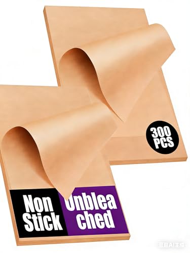 300PCS Unbleached Parchment Paper Sheets for Baking 12x16 Inches, Non-Stick and Non-Toxic Pre-cut Parchment Sheets for Oven, Cooking, Grilling, Air Fryer and Steaming - Fit for Half Sheet Pans, Brown