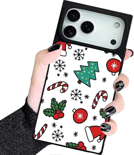 Luxury Rectangle Case for iPhone 17 Pro Max,Christmas Tree White Design Rectangle case for Women Grils Men Soft TPU Edge Protection Shock Absorption Slim Hard PC Case for iPhone 17 Pro Max