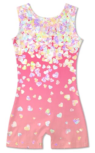 Lovely Heart Printed Tumbling Leotard Pretty Gymnastics Unitard Girls Biketard Outfit Sleeveless Dancewear for Ballet Sport 5-6T