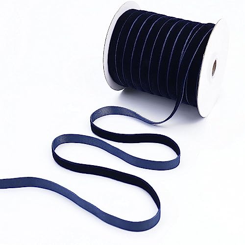 48 Yards Navy Velvet Ribbon 3/8Inch Velvet Fabric Ribbon Trim Single Face Spool Satin Ribbon for Gift Wrapping Bow Making Christmas Decoration